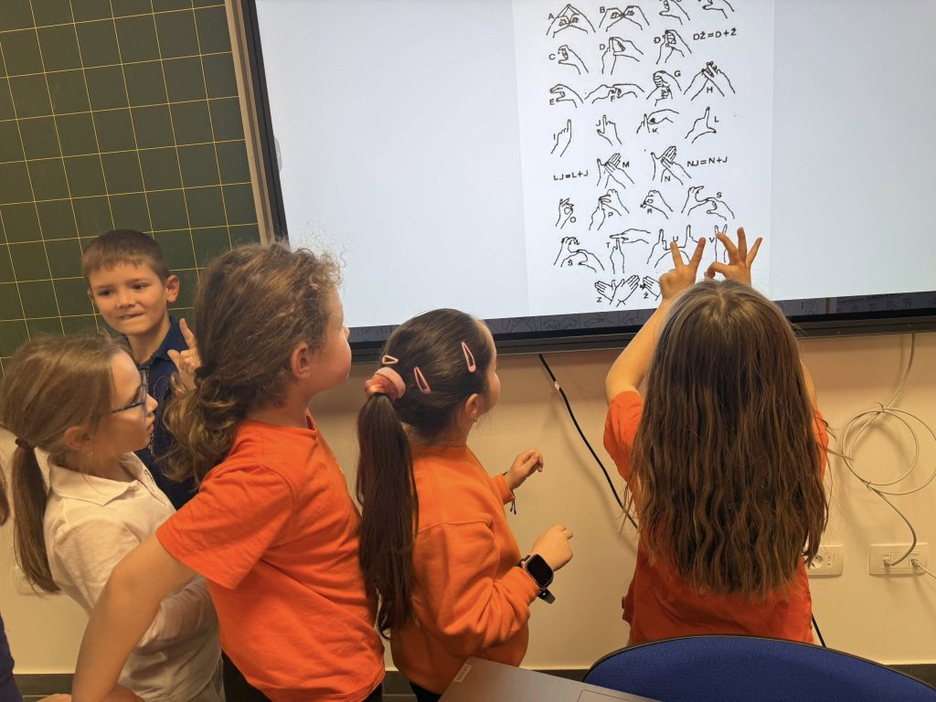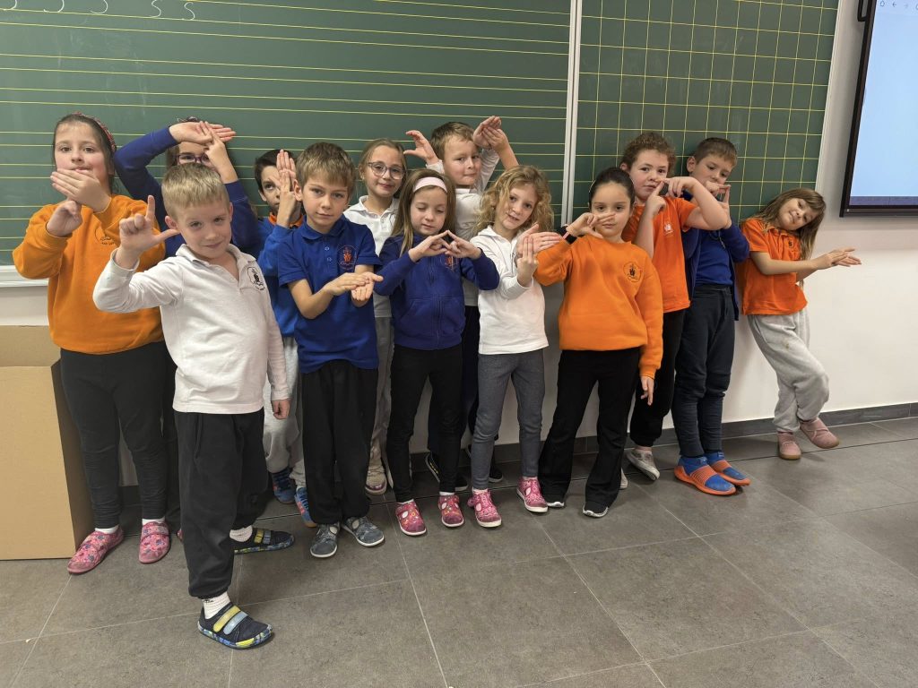 Zatim je svatko od nas pokazao prvo slovo svoga imena i prezimena na znakovnom jeziku ,čime smo napravili mali korak prema boljem razumijevanju komunikacije gluhih i nagluhih osoba.